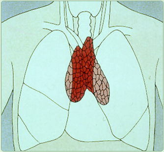 Die Thymusdrüse liegt beim Menschen hinter dem Brustbein, vor dem Herzen und besteht