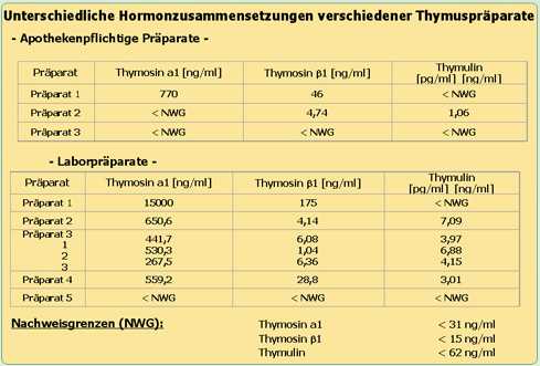 einer funktionsfähigen Abwehr. Sowohl die Thymushormone der verschiedenen Thymuspräparate als auch die von ihnen erwünschte Aktivierung von Abwehrfunktionen sind im Labor meßbar.